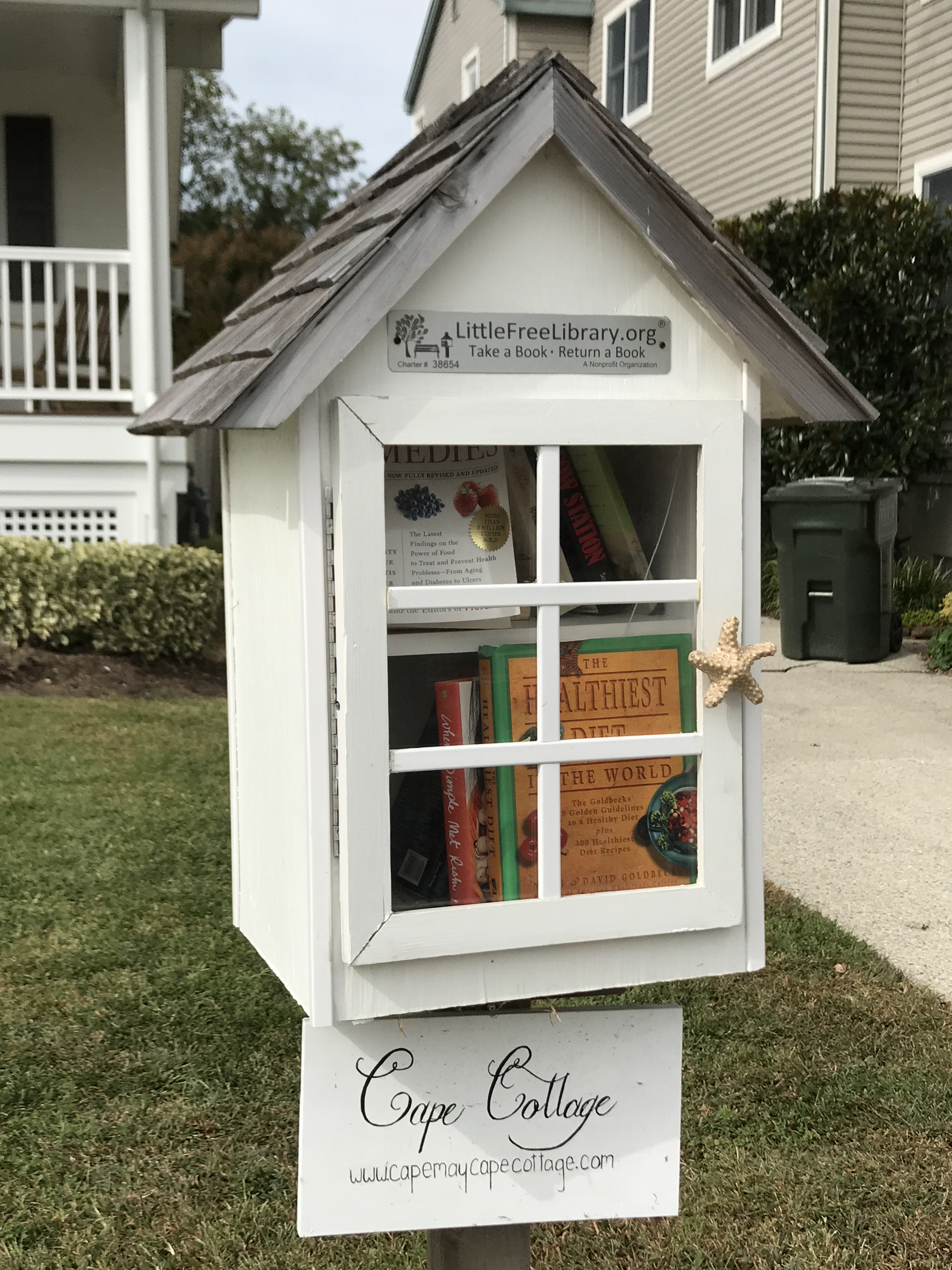 Next on our list was to hunt down and find the Free Little Libraries scattered across the cape. I had first read about these little homemade box libraries, housed on people’s lawns, in the Cape May Magazine. We drove around and checked out the creative boxes and their contents. Each library had a collection of various books including novels, cookbooks, self-help books, biographies, children’s books and more. We loved visiting each one and seeing what books were offered. Since we would be leaving the following day, we chose not to take any of the books. For more information on Free Little Libraries and where they are located along the southern Jersey coast, click here.